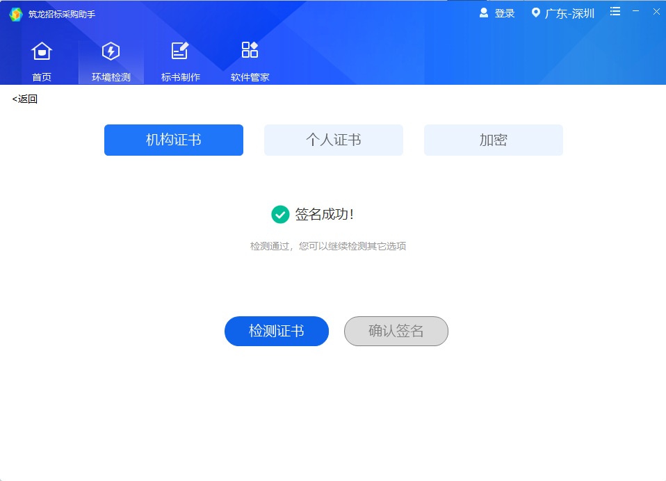 檢測成功后,點(diǎn)擊【確認(rèn)簽名】即完成檢測流程,如下圖4-8所示: