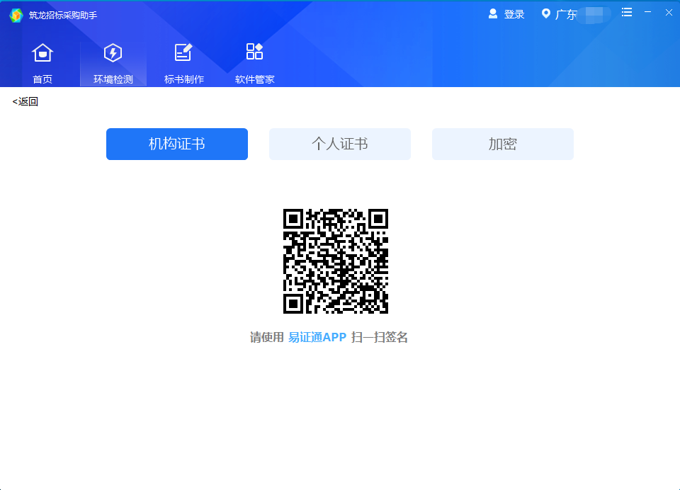 掃碼簽名檢測功能與CA簽名檢測功能類似,需要用戶使用易證通APP進(jìn)行掃碼檢測驗(yàn)證。