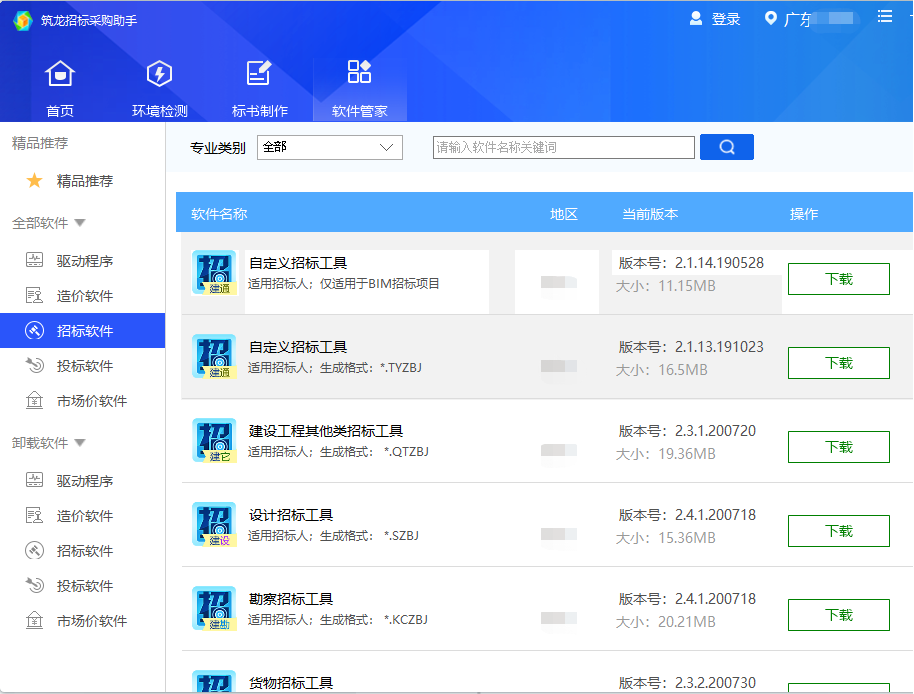 用戶可以根據(jù)需要選擇地區(qū)或企業(yè),方便快速找到所需要的軟件,界面如下1-2所示: